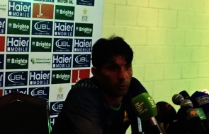 Misbah, Cook unveil Test series trophy in sponsors' reps presence