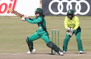 Sana dismissed Andrie Steyn to join Anisa Mohammed and Lisa Sthalekar on 146 wickets, joint-most for spinners in women’s ODIs. Action photos are attached, please credit CSA; scorecard available...