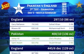 England won the 3rd Investec Test Match at Edgbaston to go 2-1 up in the series with one match to play at the Oval next week. It was a disappointing day for Pakistan as they failed to bat out the draw and...