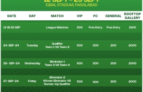 Free entrance (First-class and General enclosures) for fans witnessing action from 12 to 22 September Tickets will be available online from 1800 PST today at PCB.tcs.com.pk and physical...