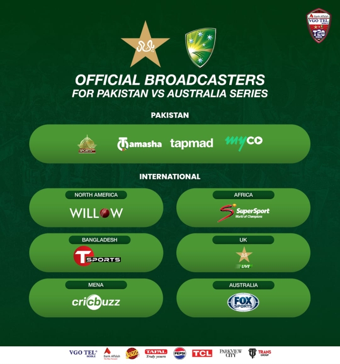 Fans can catch the highly-anticipated live-action of the series on PTV Sports in Pakistan, while Tamasha, Tapmad and Myco will provide the live-stream in the country. For the fans abroad, T Sports (Bangladesh), Willow (North America), Cricbuzz (MENA), SuperSport (Africa) and Fox Sports (Australia) will broadcast the action. The live-streaming will also be available on the PCB Live for the fans in United Kingdom.