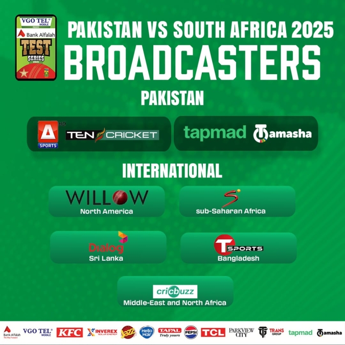 The Test series, also part of the ICC World Test Championship 2025-27 will also see PCB’s PitchSide Studio, hosted by presenter Zainab Abbas, providing viewers expert analysis during pre- and post-match shows.