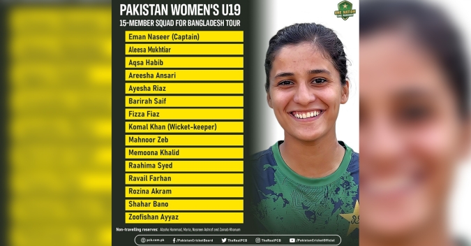 Apart from skipper Eman, who bowls leg-spin and bats right-handed, the players who will be making their Women’s U19 debut include left-handed batter Raahima Syed, all-rounder Aqsa Habib, left-arm pacer Ayesha Riaz and right-arm pacer Barirah Saif.